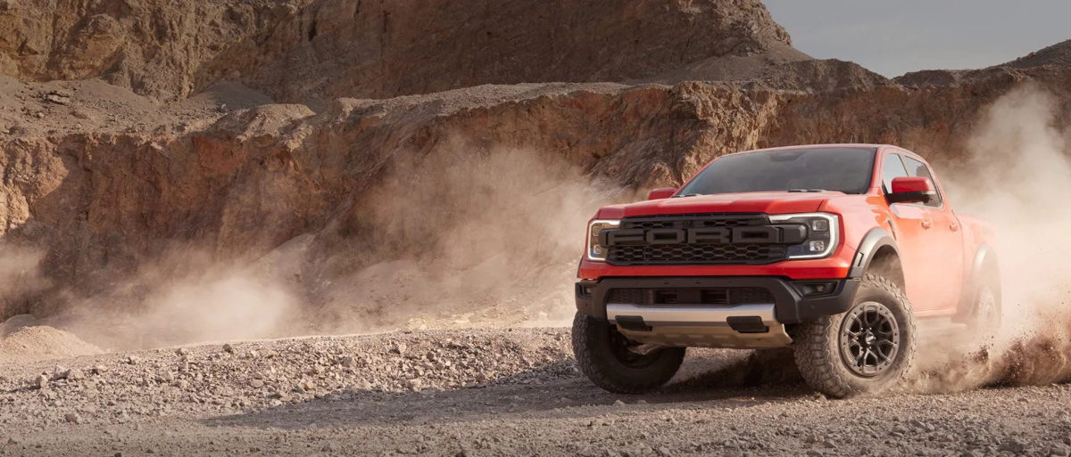 Povsem novi Ranger Raptor je ultimativni terenec. Njegovi izjemni blažilniki Fox lahko absorbirajo skoraj vse. Tudi sipine.